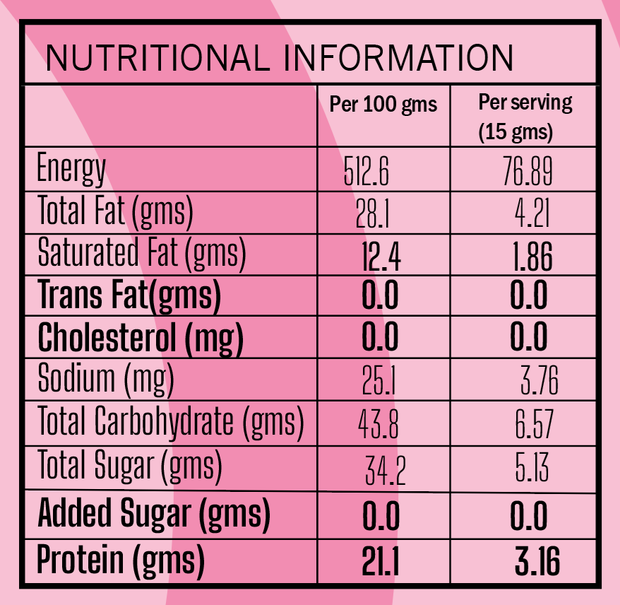 - Made with cashew nuts — rich in magnesium, healthy fats & plant-based protein that support heart health, sustained energy, and bone strength.